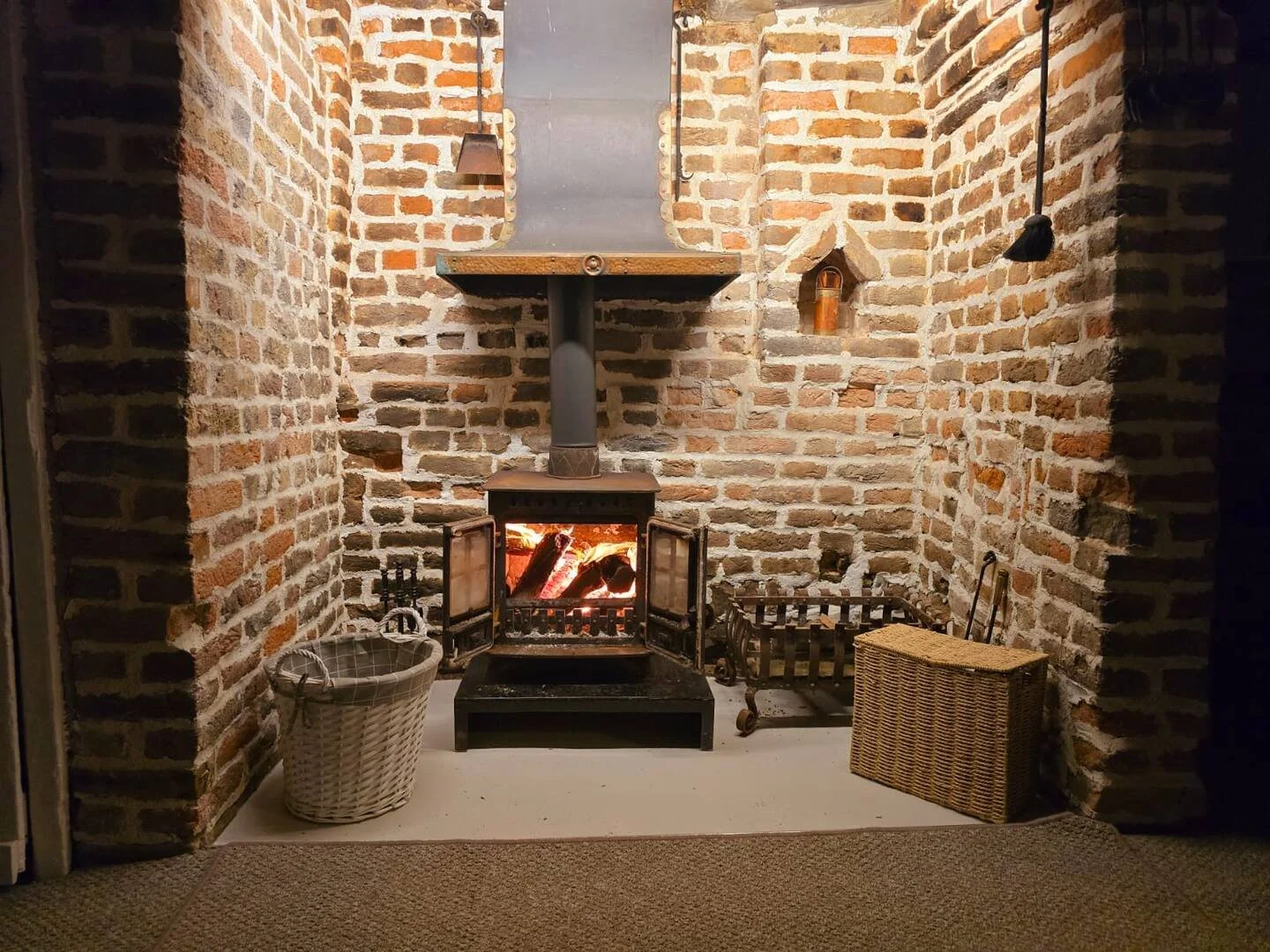 A warm and inviting space featuring original beams, a crackling log burner, and thoughtfully preserved period details